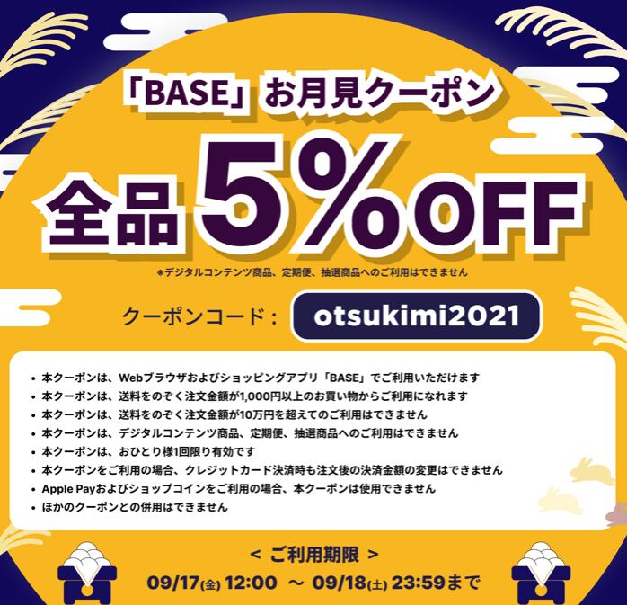 9/17~9/18 期間限定 BASE 5%OFF お月見クーポン キャンペーン