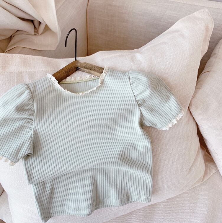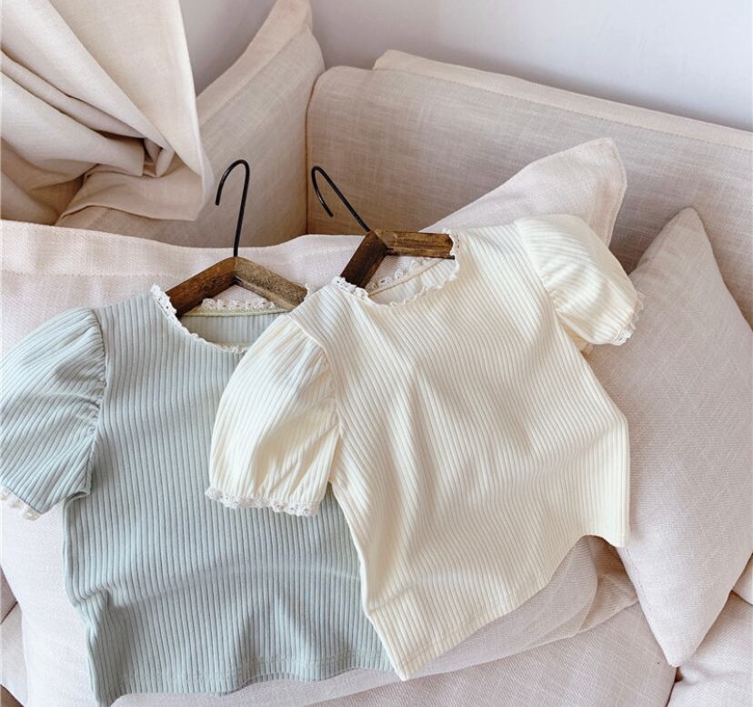 色鮮やかで可愛らしいカラーバリエーションと、レースネックデザインがポイントのTシャツ!