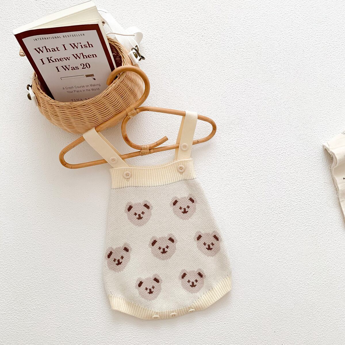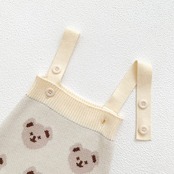 クマ柄のデザインが可愛いカーディガン×サロペットのセットアップ。
